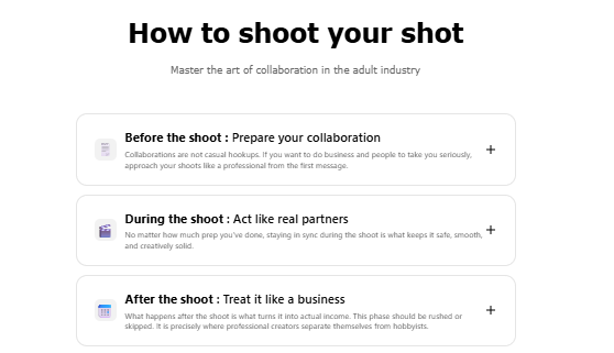 Our sister platform help professional adult content creators find and connect with each others. Letslinkup allows creators to post collab shoots opportunities, and help adult performers before, during and after the shoot.
